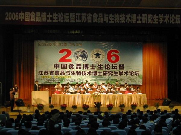 2006中国食品博士生论坛暨江苏省食品与生物技术博士研究生学术论坛于2006年5月18~21日在江南大学举行,论坛围绕“登高望远,百川汇海,求是求新”的主题,就食品安全与营养卫生、发酵高新技术、转基因与保健食品、食品贸易与文化等食品与生物技术发展及前沿热点问题进行了广泛的交流和深入的讨论。参加这次论坛的专家和研究生来自国内二十几所拥有食品或生物技术实验室的高校以及美国普渡大学的教授和研究生。