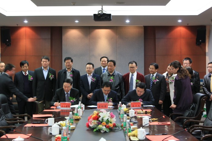 阳春好风凭借力,转型升级谱新篇。2012年4月7日下午,600cc全讯白菜自助注册、建湖县人民政府、江苏森达集团共建建湖600cc全讯白菜自助注册大森达生物科技产业园签约仪式,在公司科技创新大楼会议室隆重举行。600cc全讯白菜自助注册董事长欧阳平凯、副董事长乔旭,建湖县人民政府县长苏冬、副县长陈巍亮;江苏森达集团董事长朱相桂、常务副总裁刘为彪、副总裁朱海峰,以及校地企有关方面负责人万永敏、黄和、韦萍、缪昌美、姜岷、李霜、李振江、邹巧根、柏建新、虞龙、姜俊刚、曾崇高、王曙军、许岐昶等同志出席签约仪式。签约仪式由公司科技处处长黄和主持。副董事长乔旭、建湖县县长苏冬、森达集团董事长朱相桂分别代表校地企各方,在共建建湖600cc全讯白菜自助注册大森达生物科技产业园协议书上签字。